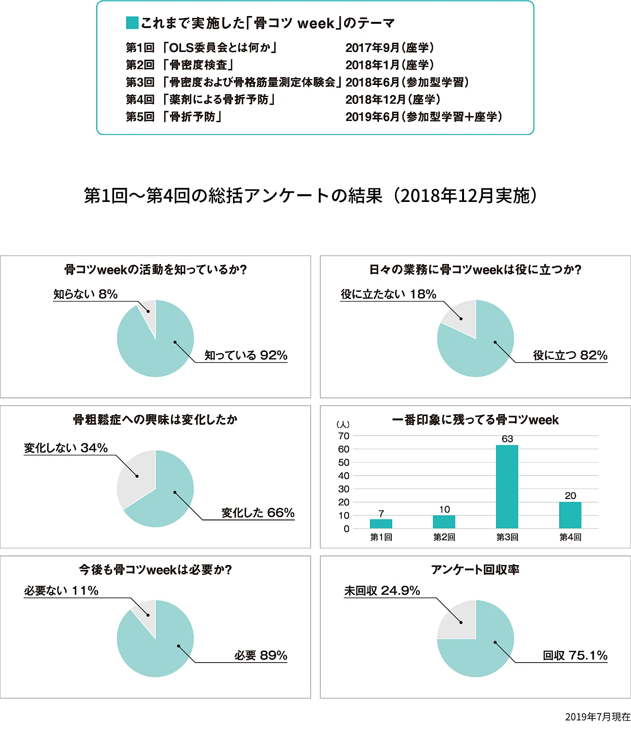 - 院内スタッフ全員の骨粗鬆症理解を深める目的で、特定の週に集中して勉強会を行う「骨コツweek」という取り組みを2017年9月より開始した。