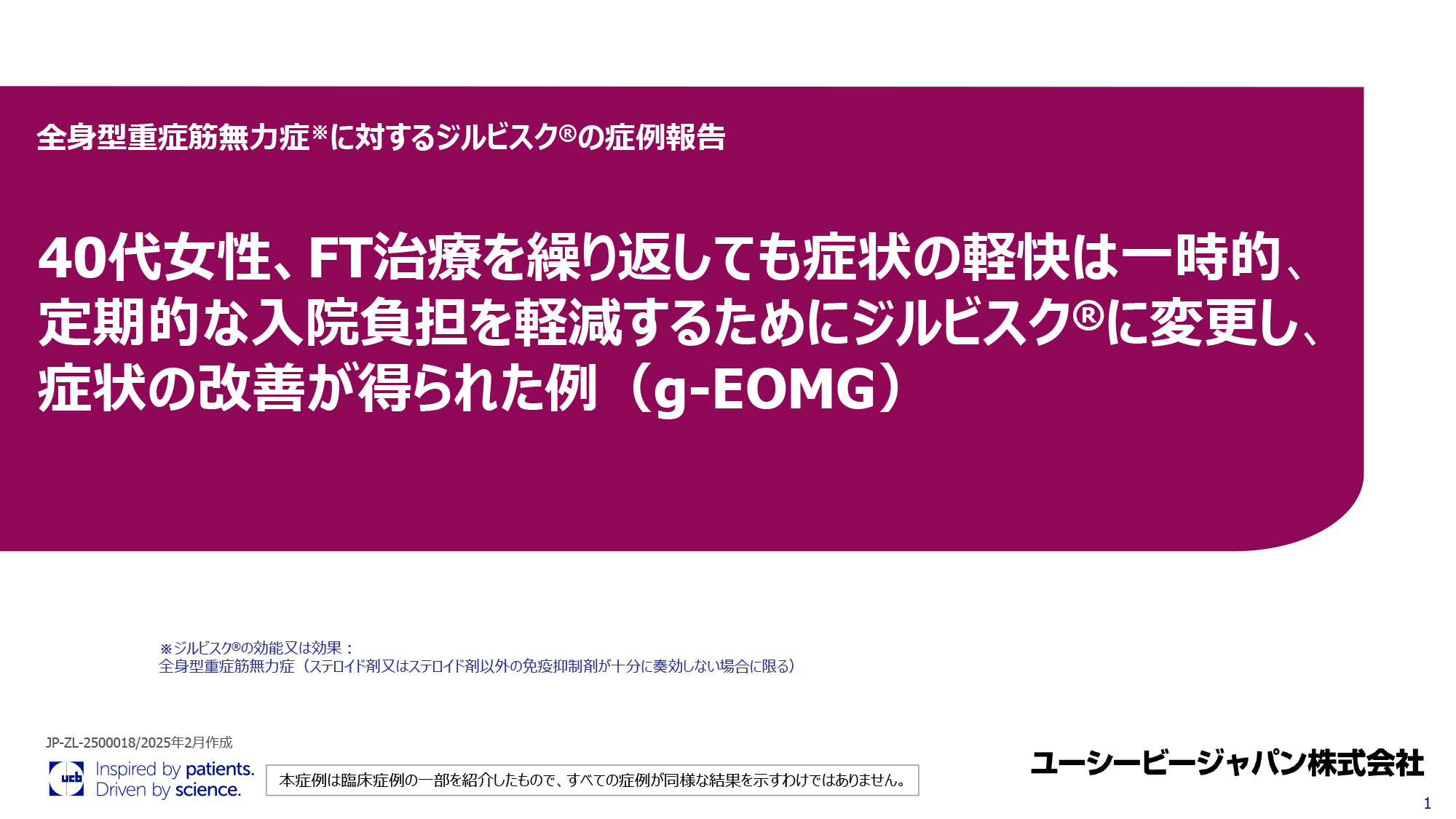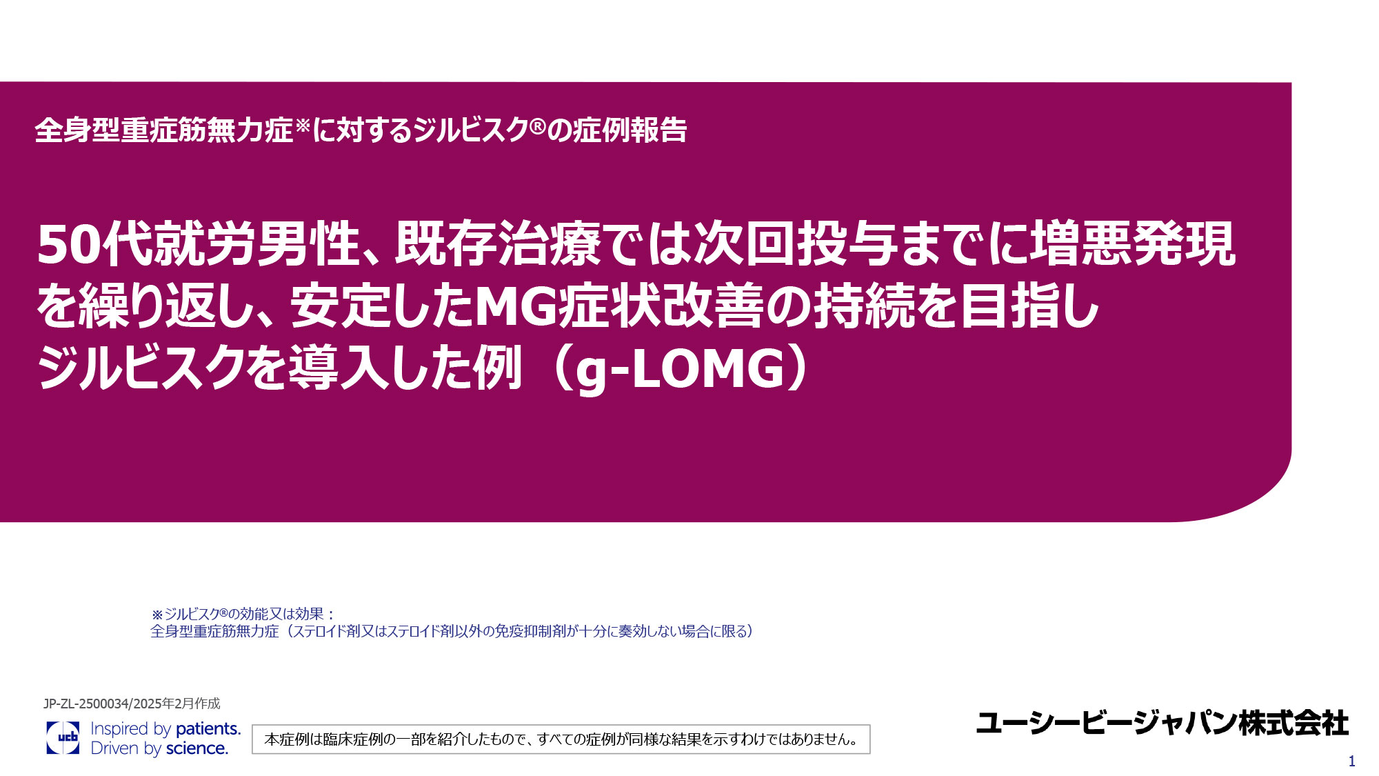 医療ナレッジ 「疾患で探す」か「製品で探す」の「+」を開き、検索項目にチェックを入れることで結果を絞り込めます。 疾患で探す Disease てんかん 関節リウマチ 乾癬 重症筋無力症 体軸性脊椎関節炎 化膿性汗腺炎 その他 製品で探す 商品 イーケプラ ビムパット ブリィビアクト シムジア シムジア 乾癬 シムジア 関節リウマチ ビンゼレックス ビンゼレックス 乾癬 ビンゼレックス axSpA ビンゼレックス 化膿性汗腺炎 ジルビスク リスティーゴ 種類 Type すべて 資材 動画 その他 キーワードで探す search keyword 検索結果: 「ジルビスク」「すべて」「」の検索結果 19件中 1 - 9件を表示 ジルビスク 資材 全身型重症筋無力症における補体(C5)阻害薬静脈内投与からのジルビスク®皮下投与への切り替え:国際共同第Ⅲb相非盲検試験(MG0017試験) ジルビスク 資材 免疫グロブリン療法または血漿交換療法の治療歴がない全身型重症筋無力症患者におけるジルビスク®の有効性:国際共同第Ⅲ相二重盲検試験(RAISE試験)サブグループ解析 ジルビスク 資材 60代男性、一時増悪後にPSLを減量できないままMG症状の改善も維持できなかったため、ジルビスク®を経口治療に加える最初の維持治療として導入した例(g-LOMG) ジルビスク 資材 C5遺伝子多型を有する長期難治例に対してジルビスクを導入した例 ジルビスク 資材 60代女性、良好な症状改善と効果の持続性を求めジルビスクを導入した例 ジルビスク 資材 20代女性、急性増悪の繰り返しにジルビスク導入した症例 ジルビスク 資材 全身型重症筋無力症※に対するジルビスク®の症例報告 70代女性、g-LOMG ジルビスク 資材 全身型重症筋無力症に対するジルビスク®の症例報告 50代、男性、g-LOMG ジルビスク 資材 全身型重症筋無力症に対するジルビスク®の症例報告 40代、女性、g-EOMG Pagination Current page 1 Page 2 Page 3 Next page Next › Last page Last » 患者さん指導用ツール 検索はこちら ※本サイトに掲載されている内容や監修・出演の医療関係者の皆様のご所属などは制作当時のものとなります。 現在と異なる場合もございますが、ご了承ください。
